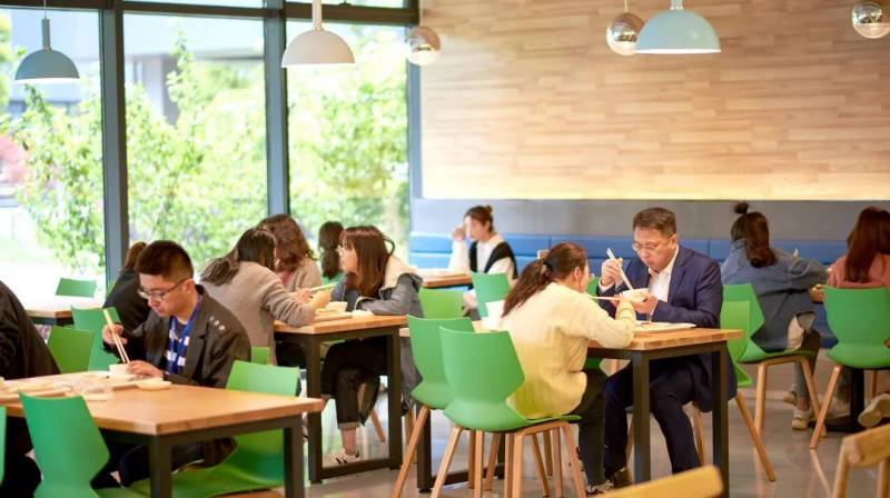 中膳打造園區(qū)、寫字樓的食堂時,改變傳統(tǒng)食堂布局,同時設立四人位、多人圓桌和吧臺的設計,保證了高峰期時人們的用餐需求,實現(xiàn)了場景體驗與品質(zhì)的全面升級。餐廳風格簡約時尚,注重空間體驗的優(yōu)化,提高人們就餐的幸福感,讓大家感受到吃飯也是一種享受和休息。