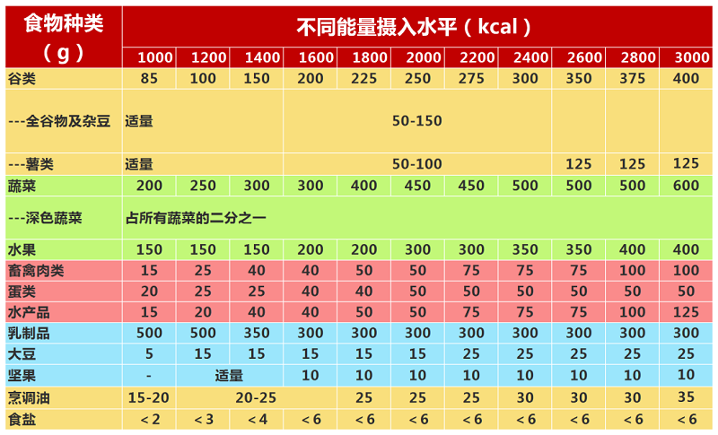 輕、中度身體活動(dòng)水平成年男性每日所需能量2400~2700kcal,女性為2100~2400kcal。早餐占一天總能量的25%~30%,午餐占40%,晚餐占30%~35%。