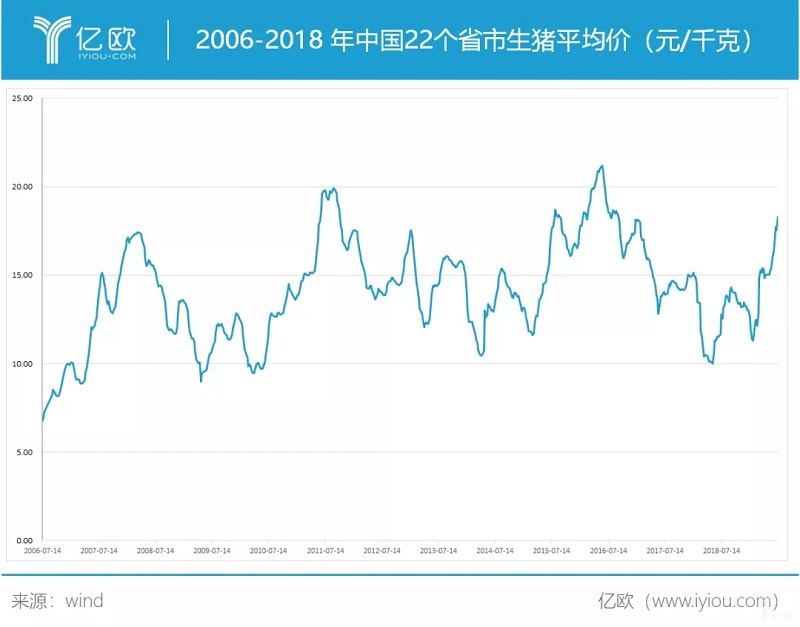 生豬養(yǎng)殖是一個周期性非常強(qiáng)的行業(yè),幾乎每兩年價格都會出現(xiàn)明顯的山峰狀狀波動,并呈循環(huán)之勢。