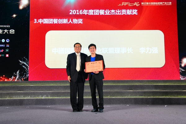 中膳李力強(qiáng)獲得中國(guó)團(tuán)餐產(chǎn)業(yè)人物獎(jiǎng),中國(guó)烹飪協(xié)會(huì)李亞光副會(huì)長(zhǎng)頒獎(jiǎng)