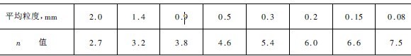 n———指數,與顆粒的粒度和形狀有關(見表1和2)。