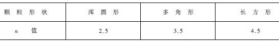 表2 n值與形狀的關系(顆粒粒度1mm)