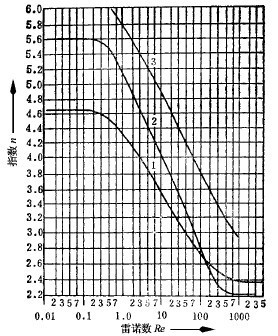 按摩爾朗德(Moreland)等的研究,n值還與雷諾數有關,其關系示于圖1中。雷諾數按